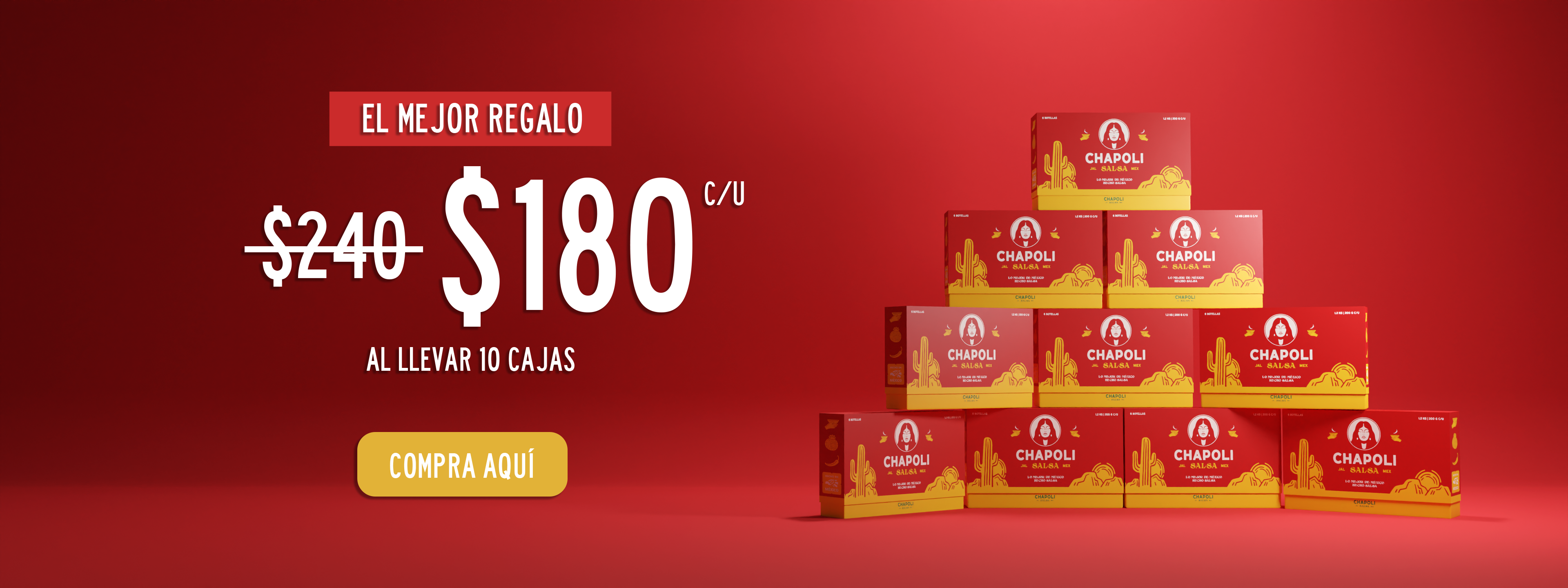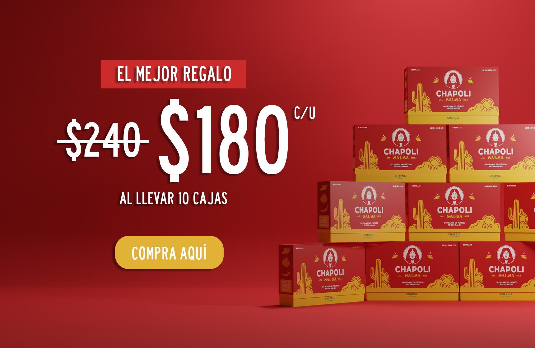 La Caja Mix contiene nuestros seis sabores: Casera, Habanero, Serrano con Cacahuate, Botanera, Chipotle y Güero Asado.